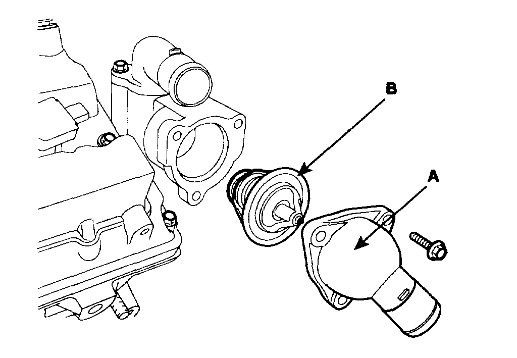 1. Drain engine coolant so its level is below thermostat.