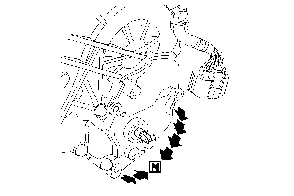 6. Make sure the selector control shaft is in the N position. If necessary, move the shift lever to the N position.