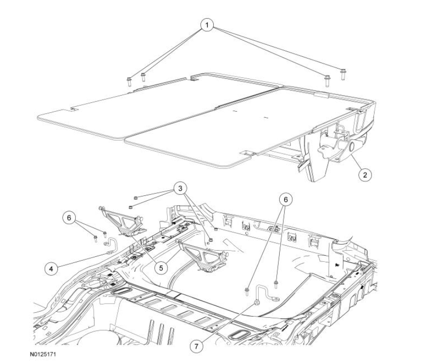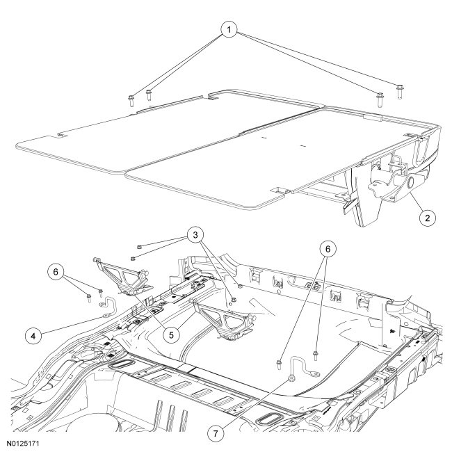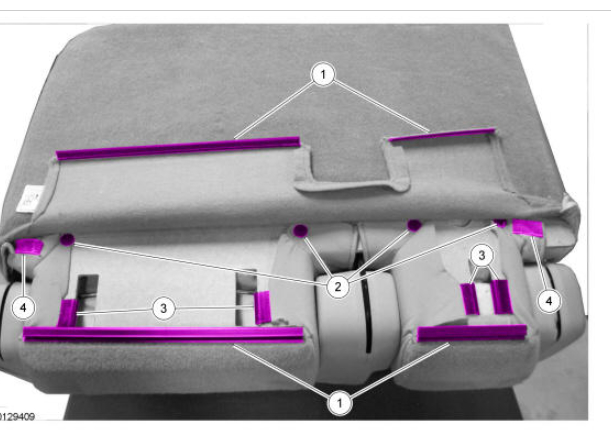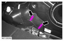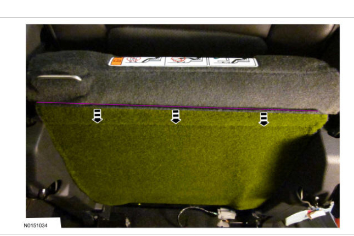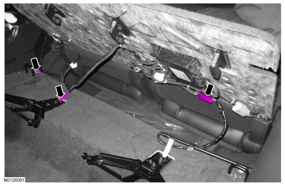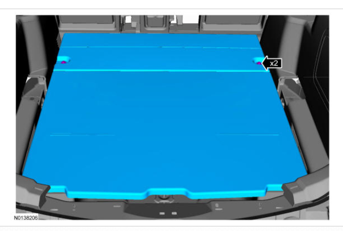 1. Remove the LH and RH quarter trim panels. REFER to Trim Panel, Quarter Trim Panel - Without Inflatable Safety Belts or REFER to Trim Panel, Quarter Trim Panel - With Inflatable Safety Belts.