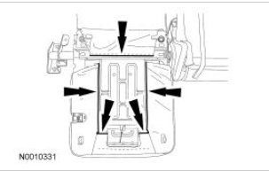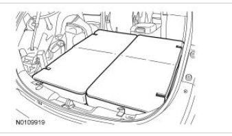 4. NOTICE: If equipped with a power seat, do not lift the load floor flapper panels too far or damage to the wire harness retainers will occur.