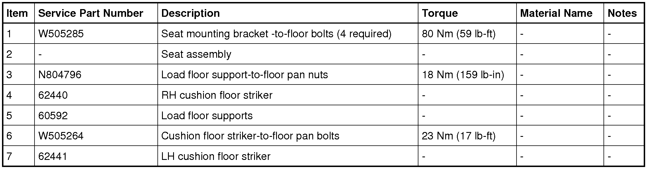 7. Remove the four mounting bracket-to-floor bolts and remove the third row seat.