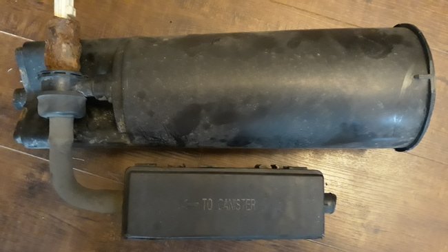 This looks like the charcoal canister from the Evaporative emissions system (EVAP). The charcoal canister is where fuel vapors are stored from your vehicle's fuel tank and the introduced into and burned by your vehicle's engine. If the canister is missing, this would constitute a major vacuum leak for the engine and if it would start, it would run extremely rough and have major driveability concerns. In the diagrams down below I have included instructions for the removal and installation of the EVAP Charcoal Canister. You can use this guide as a template to reinstall the charcoal canister and make your vehicle driveable again. Please get back to us with how things are progressing.