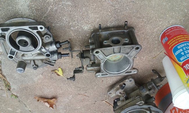 When I disassembled the throttle body these two screws were loose. And the gasket was soaked with gas.