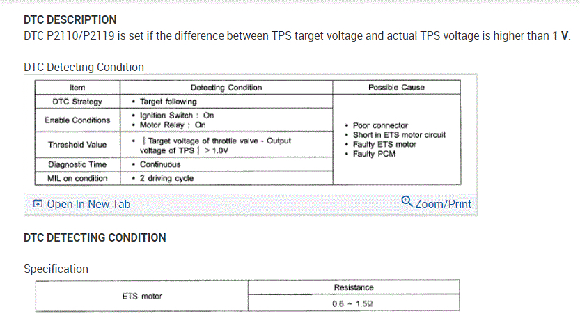 Throttle Body flap does not move. Car starts but no acceleration. Codes P1192, p1195, p2119.