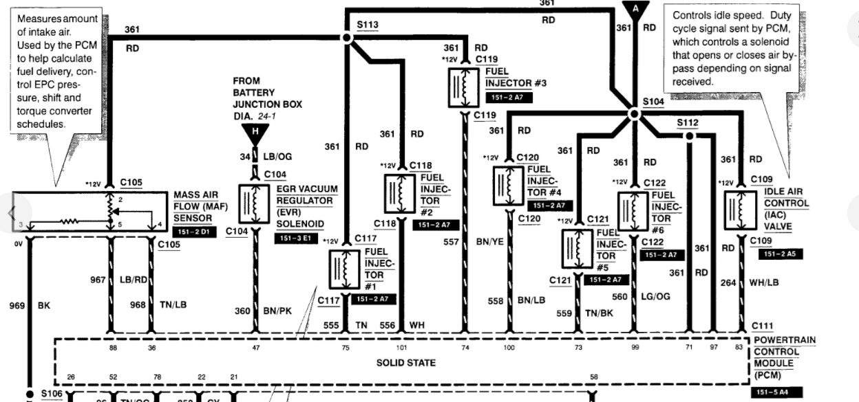 The red wire to the IAC is a common voltage sent to all the injectors as well. It comes from the fuse block.