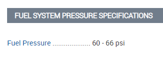 With the key on and engine off you should have 60-66 PSI of fuel pressure.