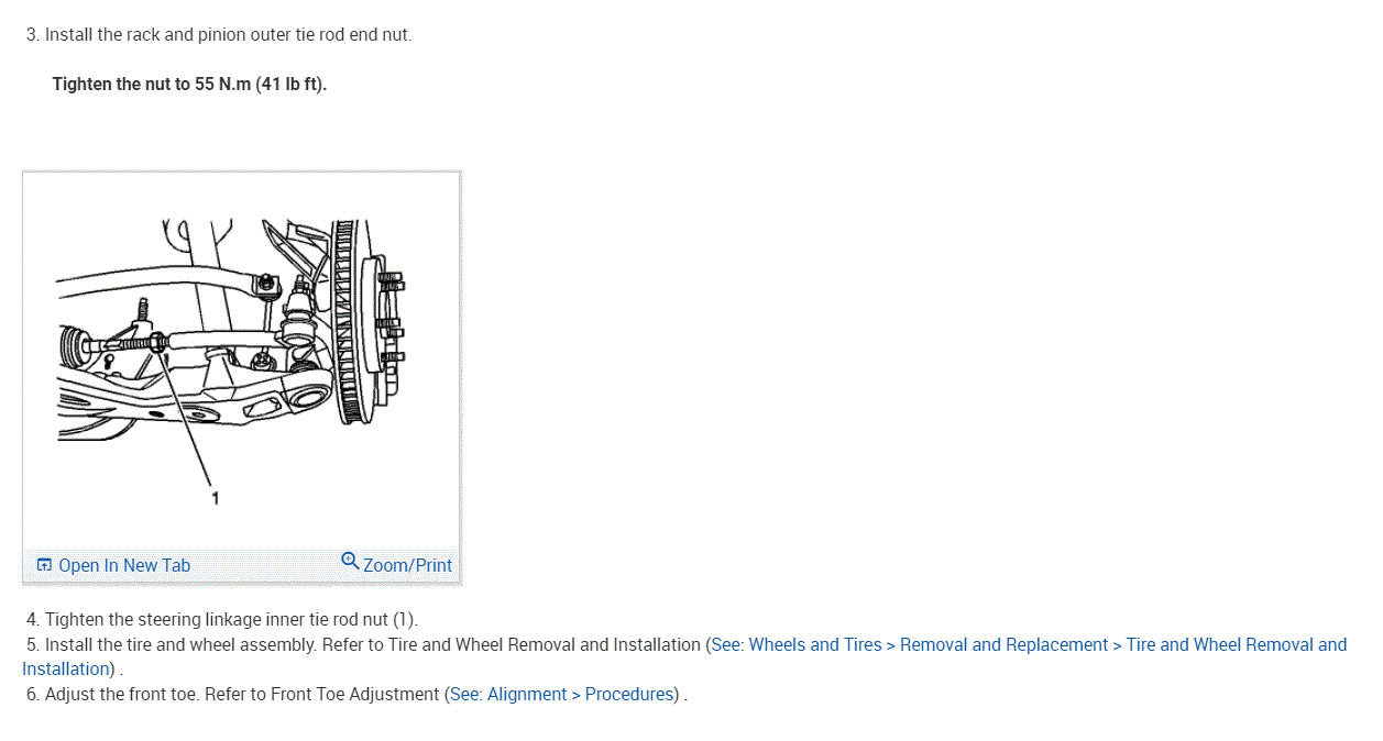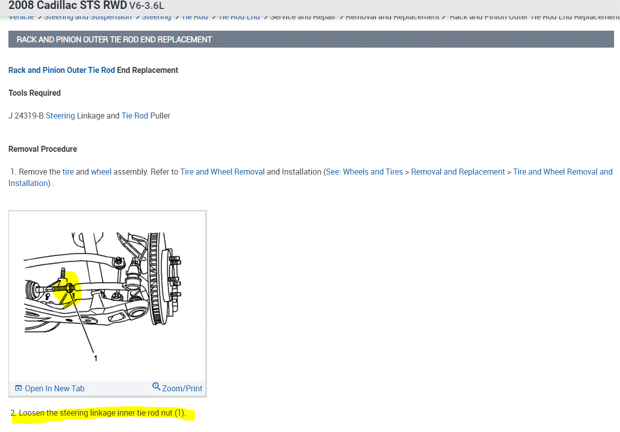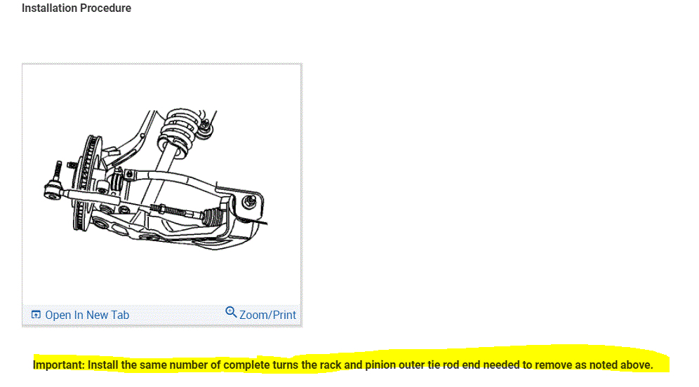 As far as tie rod replacement, for some odd reason, my manual is only showing outer tie rod replacement. I attached the directions below. Remember when you unscrew it from the inner tie rod to count the number of turns so you can reinstall the new one the same.