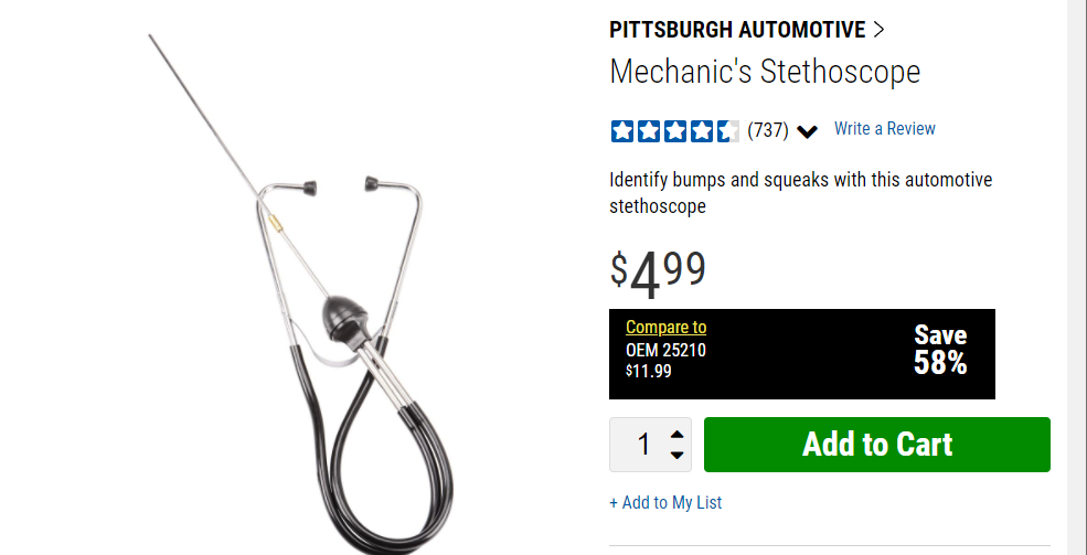 You can also get a mechanics stethoscope from most any parts store to listen to this as well and that would be more accurate but not required. I posted a picture below of this.