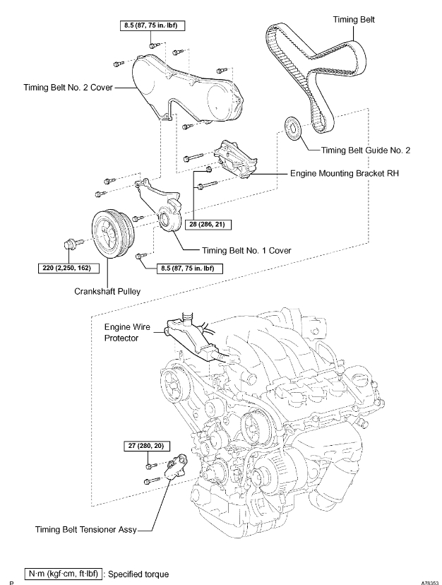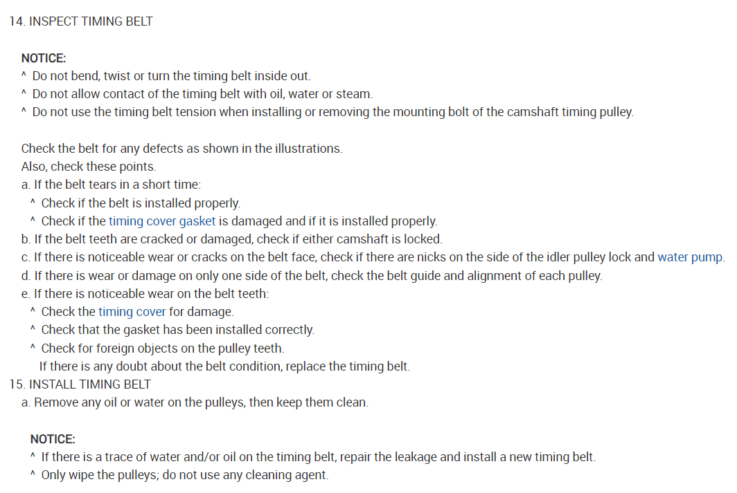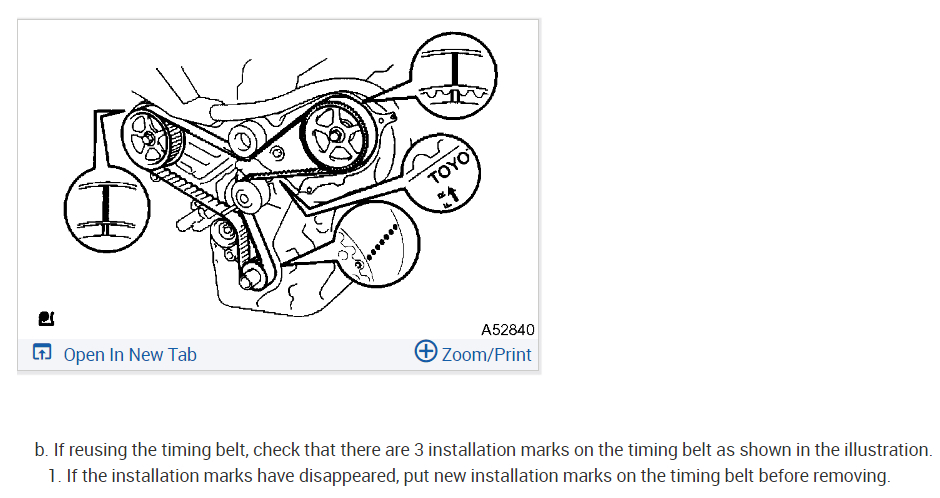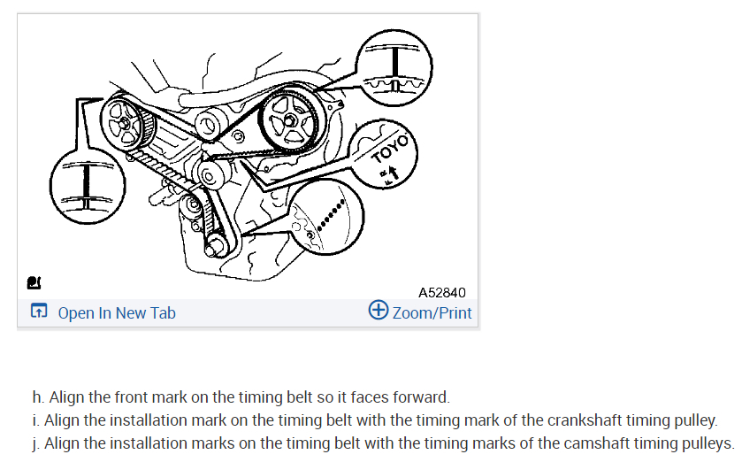 On the new timing belt there will be installation marks for each gear. Be sure the arrow on the belt is facing away from the car, not towards the engine. Match each line up with the line on the cams, and the crank sprocket will have a dot in the shape of "o" where the dotted line on the new belt will need to be installed.