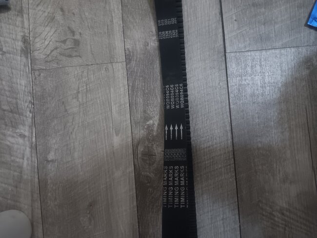 On both left (front) and right (rear) cams you will see a mark on the gear wheel in the shape of "I", this will line up with an arrow on the backing plate directly above it pointing down. The crank sprocket at the bottom will also have an arrow pointing upwards to match with an arrow stamped on the block pointing downwards.