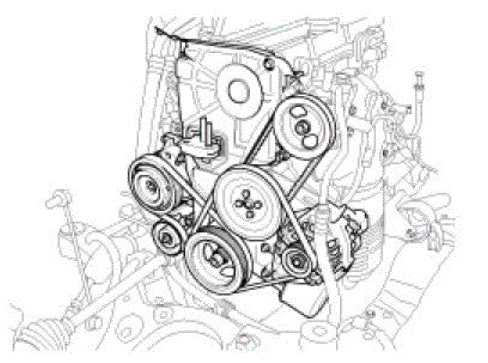 Rotate crankshaft in clockwise direction to set 1st piston on top dead center (TDC) and rotate crankshaft in counterclockwise to 90° then measure the belt tension in the middle of tension side span (in arrow direction of above illustration) by free vibration method.