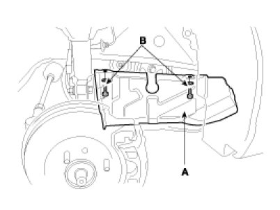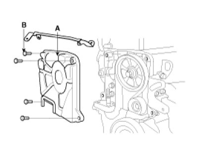 12. Remove the 4 bolts(B) and timing belt lower cover(A).