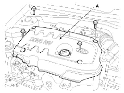 9. Remove the 4 bolts(B) and timing belt upper cover (A).