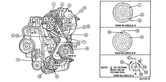 NOTE: Care must be taken during timing belt installation to prevent damage to the inner timing cover.