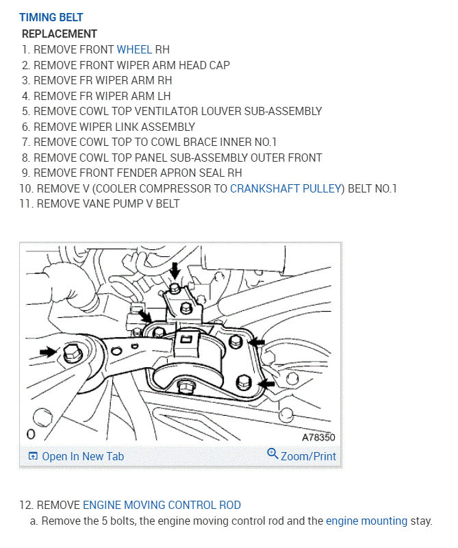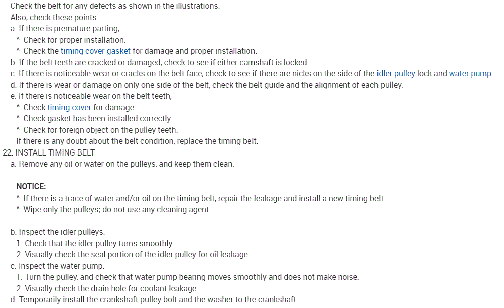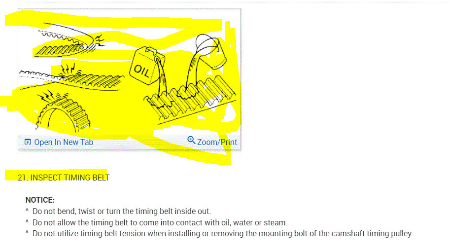 One important note. This engine is called an interference engine. What that means is if the timing belt breaks, there isn't enough room between the pistons and valves and damage will occur. If that happens, in most cases it is less expensive to replace the engine. This is why I'm recommending the replacement of the belt. Also, the directions show what to check for when inspecting the belt.