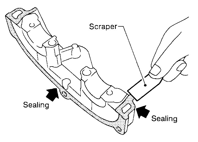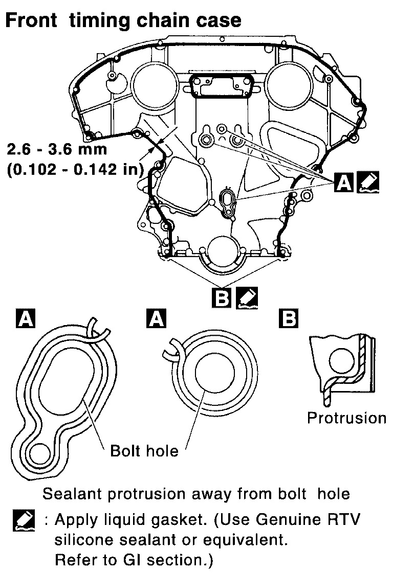 23. Apply Silicone RTV Sealant to front timing chain case as shown.
