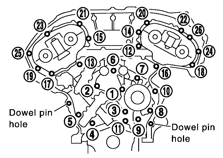 28. Remove the rocker covers. Loosen the rocker covers bolts in the order shown.