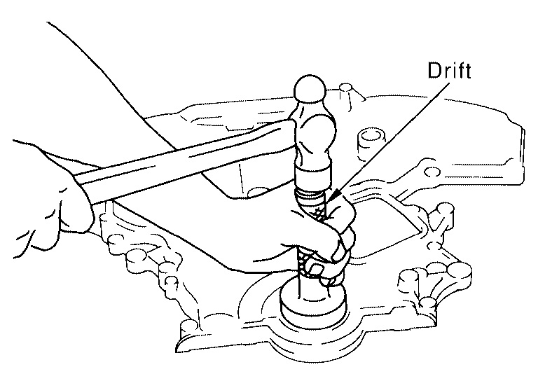 Using a suitable drift, press-fit oil seal until it becomes flush with timing chain case end face.
