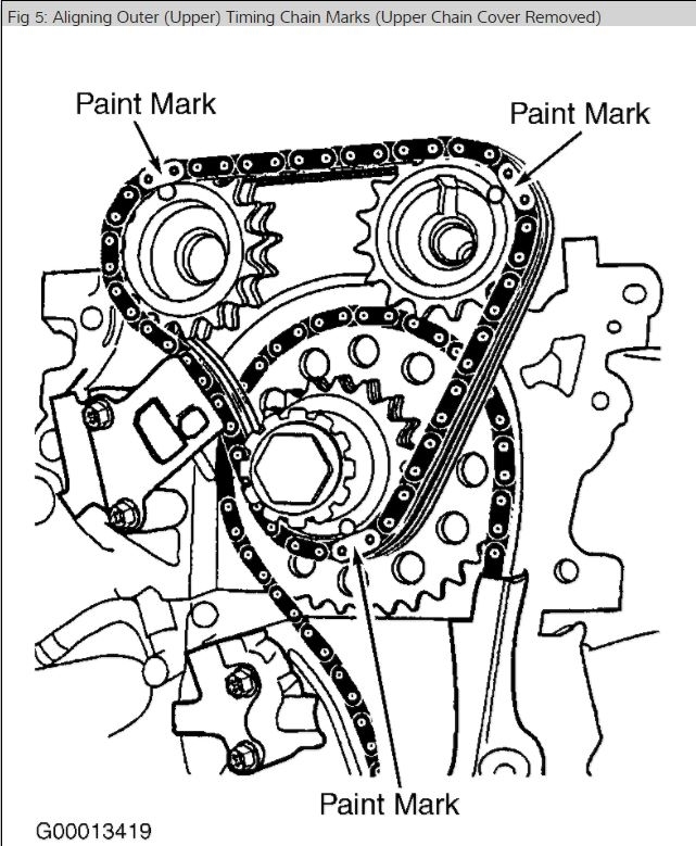 When the upper timing chain meets its mating mark does the lower chain also meets it mating mark?