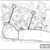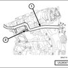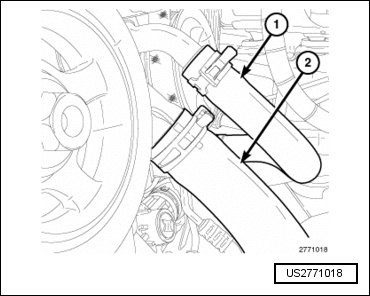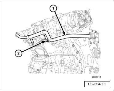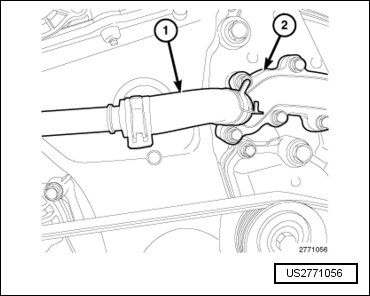 - Remove the upper radiator hose (2) and thermostat housing (1). Refer to => [ Thermostat ] See: Thermostat, Engine Cooling > Removal and Replacement > Thermostat.
