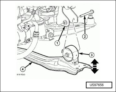 - Temporarily reinstall the front fore and aft crossmember (4).