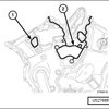 - If removed, install the coolant outlet housing (1) to the timing cover with a new gasket using only the four bolts (2) shown tightened to 12 Nm (106 in. Lbs.).