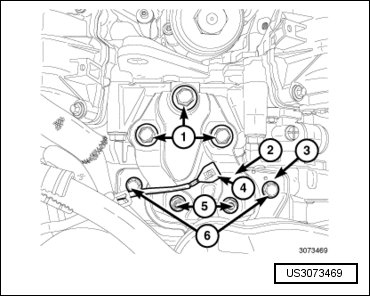 - Remove the crankshaft vibration damper (6). Refer to => [ Vibration Damper ].