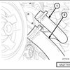 - Remove the bolt (2) and reposition the heater core supply tube (1).