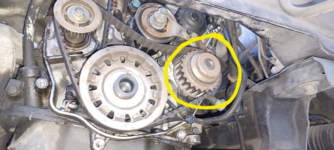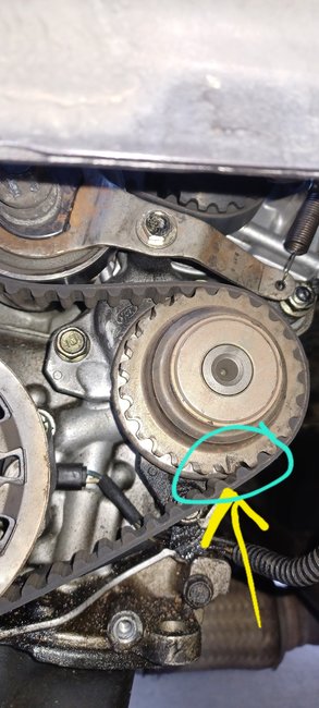 My timing is off on the vehicle and I'm trying to correct it. I have the Haynes manual but I'm not finding the specifications for one of these sprocket alignments that has a mark. I'm going to include a picture and hopefully that will help to identify where this Mark is supposed to be at and what the actual sprocket is called.