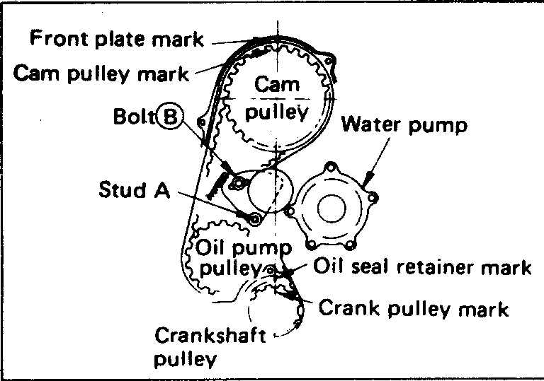 2. Align the matchmarks of the camshaft timing pulley with that of the front plate.