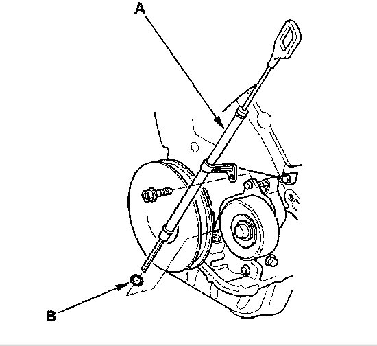 9. Remove the dipstick and tube(A) discard the O ring(B). Check (fig6).