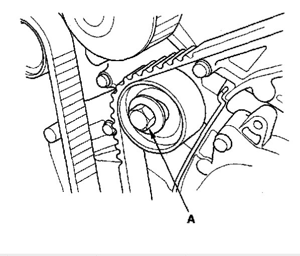 16. Loosen the idler pulley bolt(A)about five or six turns. Then remove the timing belt. Check (fig12).