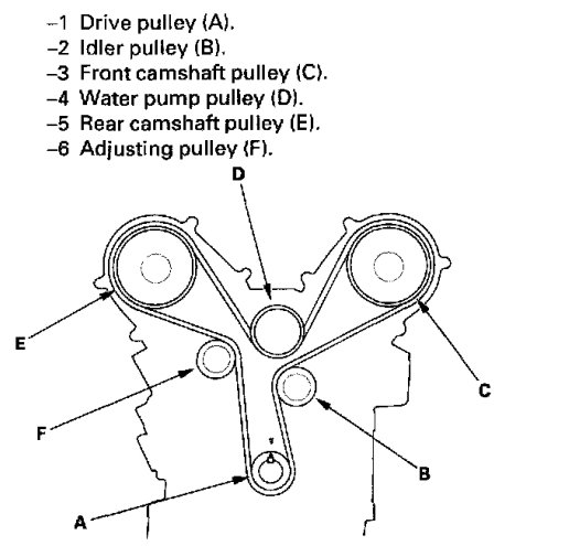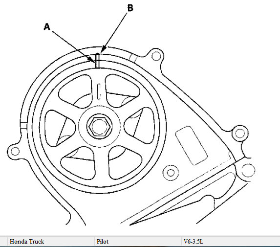 2. Check that the #1 piston top dead center on the front camshaft pully and the pointer (B)on the front upper cover are aligned. Check( fig2) bellow.