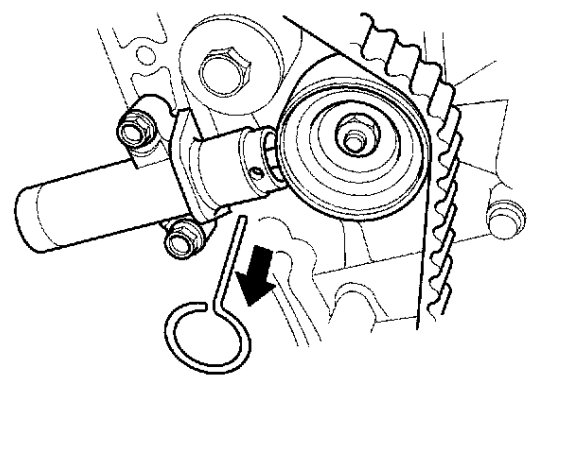 7. Use a hydraulic press to slowly compress the auto tensioner. Insert 2.0mm(o, o8 inch)pin through the housing and the rod.