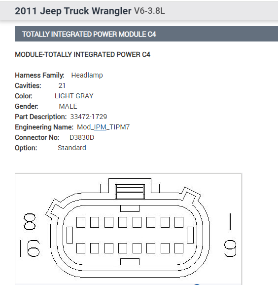 Happy to help. If you look below, the first pic is the connector view. The second picture is what each pin is used for. Note: From experience, inspect the pins closely in both ends of the connector. They can show power and then fail when under a load.