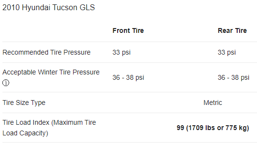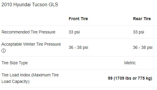 According to our charts the correct tire pressure should be 33 PSI. I have attached the recommended pressure and some tire maintenance best practices for your reference.