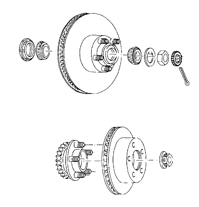 On vehicles with inner and outer bearings, inspect the bearings and cups for wear or damage. Adjust or install new bearings and cups as necessary.