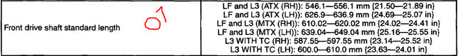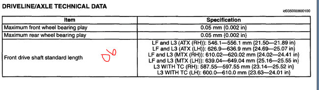 I have gone through the front end as I did a motor/transmission swap from a 2006 Mazda 3i 2.0 automatic also. And I'm installing the married combo motor and transmission from the 2006 into the 2007, the CV axles and carrier attached with intermediate axle are different. I was going to go with buying the axles required for the 2007, will that work? The transmission look identical. Here is the 2006 axle lengths with intermediate transmission: