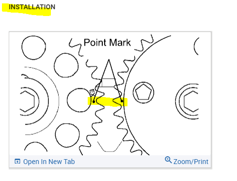 There isn't one for this engine. Timing is done by using marks on the cams and crank gears along with colored chain links.