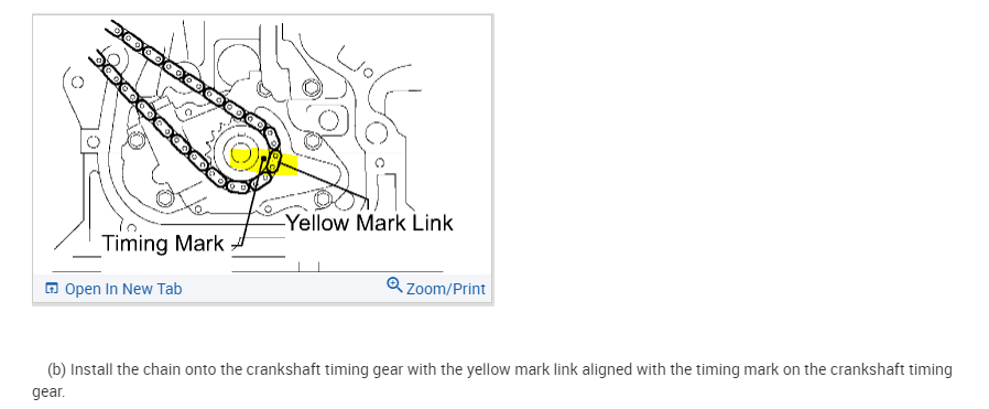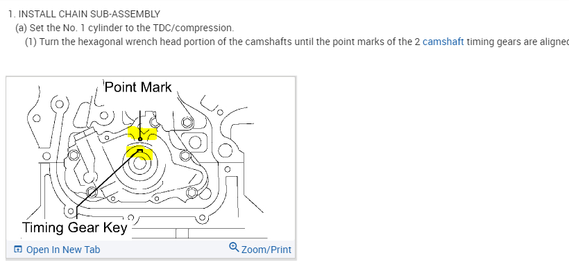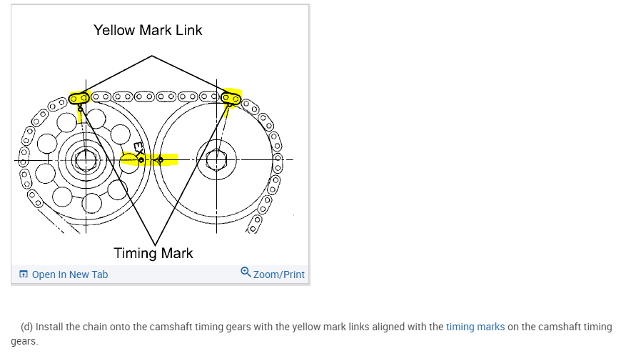 Lock/align camshafts timing marks when replacing timing chain tool.