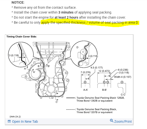 The directions are listed above for installation. When you say sealer, what are you referring to? Do you mean the timing chain cover?