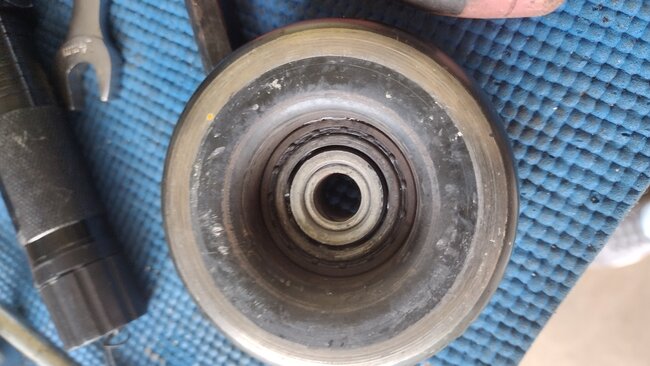 Hello, can someone please tell me how to remove the top idler pulley? It appears to be attached with a single bolt/ fastener. The problem is how to remove it. There's no room for a ratchet. It's too tight and the pulley appears to have come loose and broken all my belts drive / AC. The pulley has come apart, but the bolt is still in place. Looks like a snap ring behind the pulley may have come loose. I replaced the drive belt last year. I noticed a strange noise coming from the front of the engine two days ago and today I had to go get the car off the side of the road. It broke both belts when the pulley came apart. I'm not sure how to replace it as there's no room to get it off, I'm not sure if the top mount has to come off or not. Can someone help me? Thanks. JC