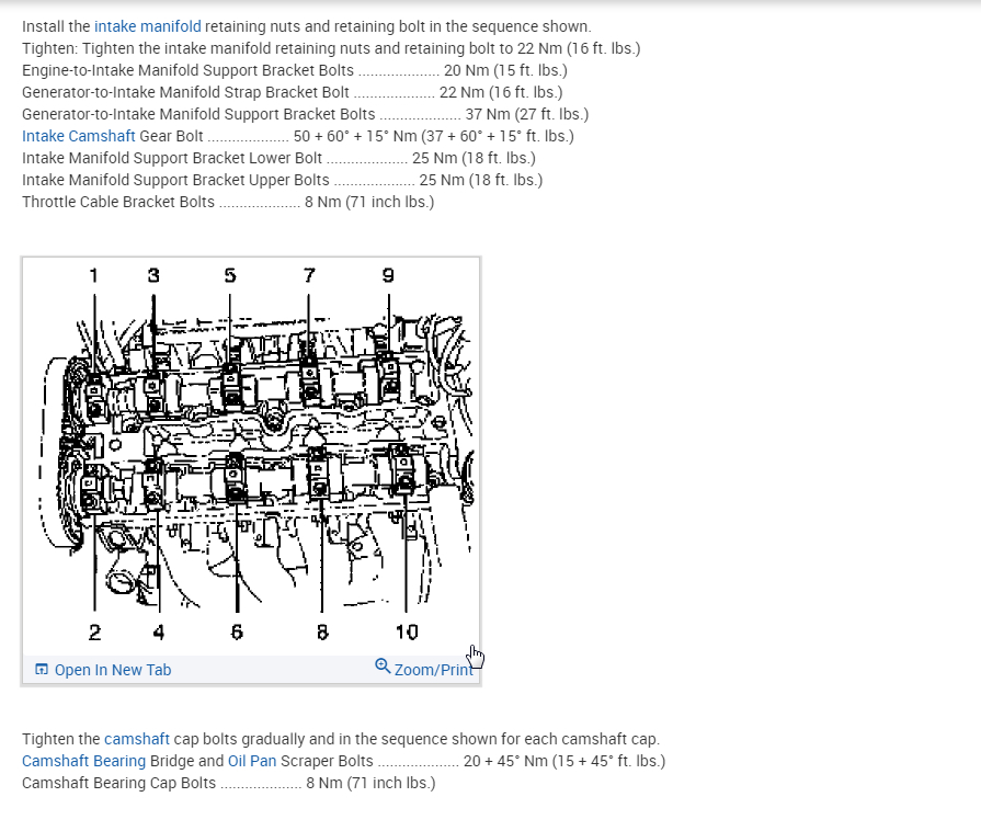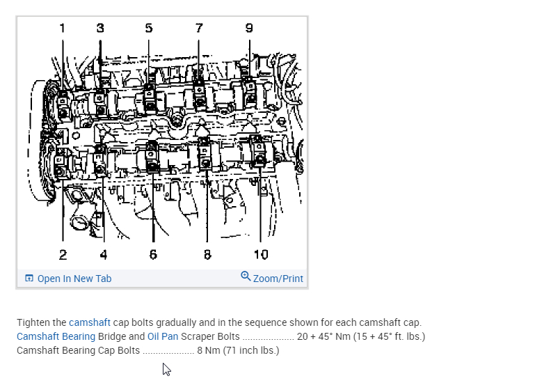 Toque specs needed for CAM cap bolts and head bolts