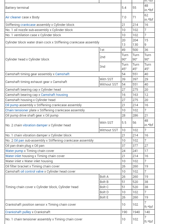 Not sure if you need specific torque settings for the engine so I included all the torque specs listed under the engine. Let me know if you need something specific and I can get that as well. Thanks