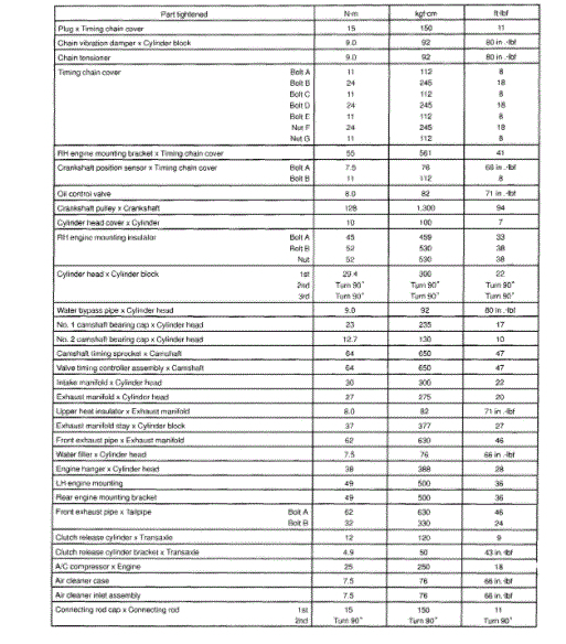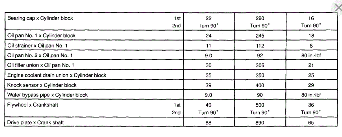Torque: 29.4 Nm (300 kgf-cm, 22 ft. Lbs.) Initial +90 +90