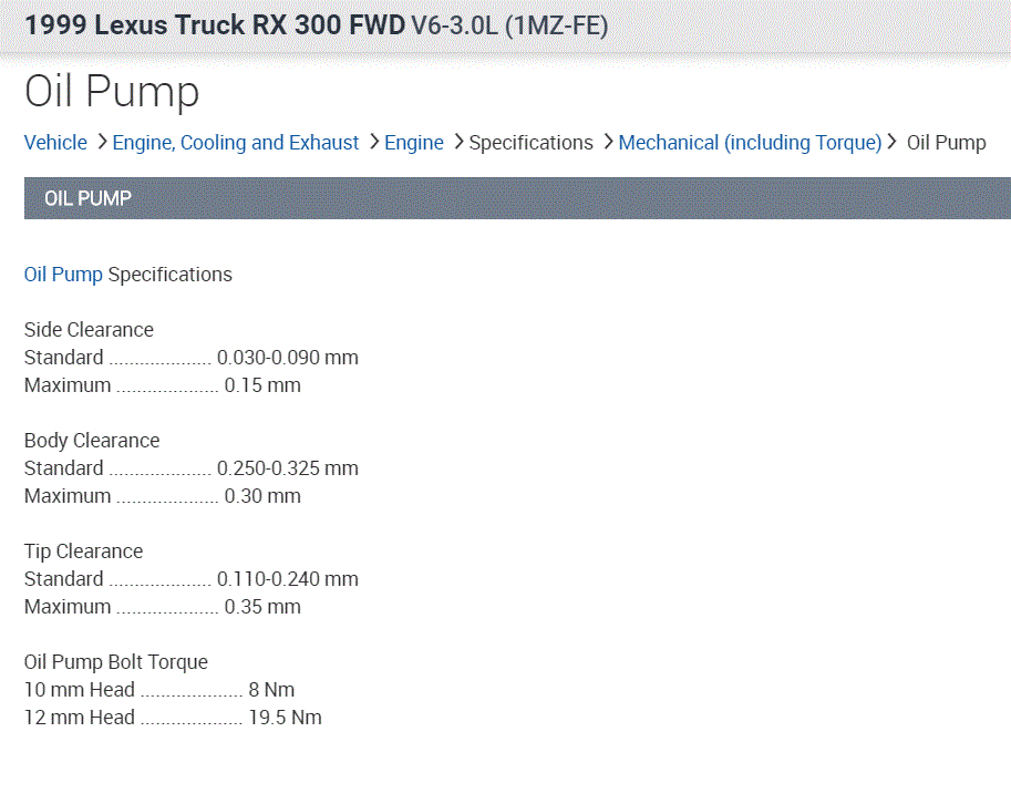 See pic 4 for oil pump specs.