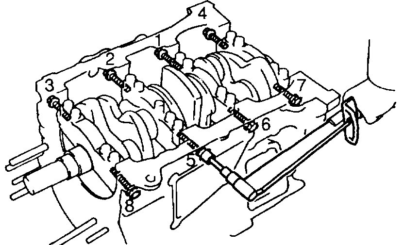 E) Retighten the cylinder head bolts by 90° in the numerical order shown.