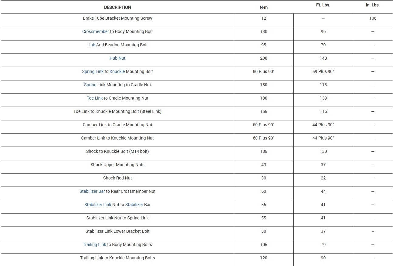Trailing Link to Body Mounting Bolts - 79 ft lb.