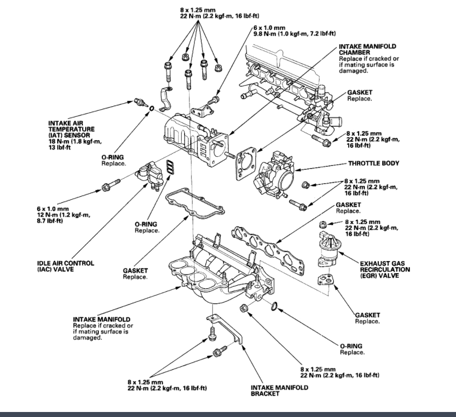 I am about to declare my Air Intake Manifold and I have no idea what the tightening sequence is or the amount of torque needed. It's a 2.3 liter VTEC engine with and automatic transmission.