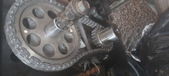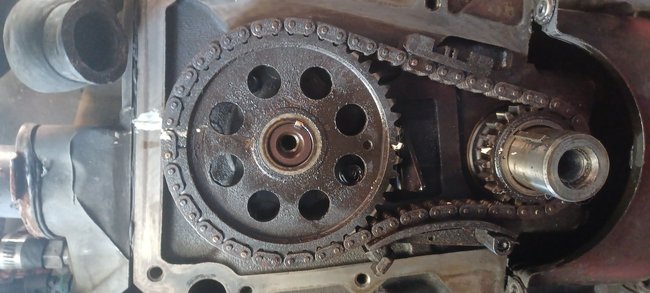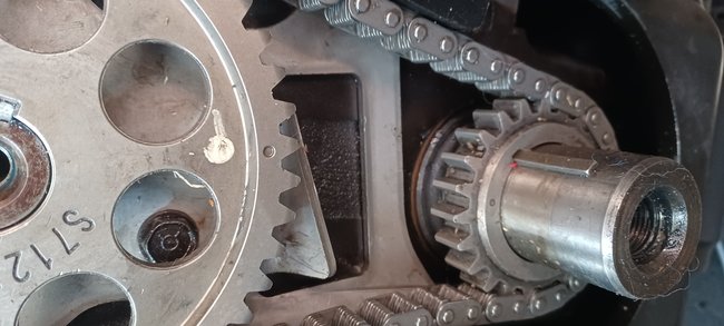 Timing chain sprocket bolt atop.